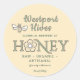 A sweet pale yellow FDA-compliant label with a cheery bee and a stylised flower that replaces the "O" in the word honey.