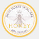 An elegant honey label featuring a beautiful ghosted bee graphic logo for honey based skincare products.
