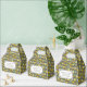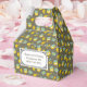 A pattern of honey bees flying is shown on the box, flying around a wood honey spoon, dripping with honey, honey jars and price tags. Give your friends a personalised box to carry small honey jars back home. Edit the text to add your apiary business name and information. You can replace the border with your own image around the text. Find the the matching sticker in the collection to label your honey jars.