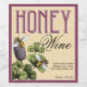 Bees on clover flowers with a custom honey text image and honeycomb background. Personalise this design with your own honey wine, mead, details.