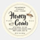 Simple eye-catching Honey with Comb Label with an inquisitive watercolor honeybee near the word Honey.