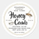 Simple eye-catching Honey with Comb Label with an inquisitive watercolor honeybee near the word Honey.