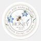 Watercolored honeybee and vintage blue bellflowers on a white background. "Honey" is written in a decorative font.