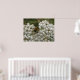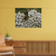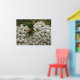 This cute poster features a photograph of a gorgeous black and yellow striped honeybee collecting pollen from some white wildflowers. The photograph shows how intricate the wings are and the huge eyes too.