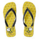 Smiling flying bee cartoon over seamless bee-hive background. Custom text on each sandal.