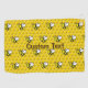 Smiling flying cartoon bees over seamless bee-hive background. Custom text.
