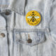 This sweet honeybee button shows a large bee over a light, bright honeycomb background. The yellow and black bee has gossamer white-blue wings that are spread out like it's ready to fly. The background is a pretty golden beehive honeycomb pattern. Above its head rests a crown. This original, nature - inspired design is perfect for a beekeeper or a queen bee. Use the templates to easily personalise the text.
