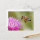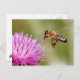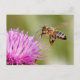Honeybee landing on a milk thistle flower postcard