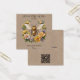 A business card on a kraft paper style background featuring a honeybee surrounded by flowers.