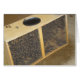 Honeybee can be purchased in packages such as this one, with thousands of workers and one queen. The silver can was full of syrup that fed the bees while they were travelling.