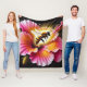 Honeybee Pollinating a Blooming Bright Hibiscus Fleece Blanket