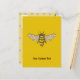 Honey bee with open wings. Custom background colour. Custom text. Seamless pattern background at back side.