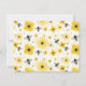 A flat notecard featuring a pattern of honey bees, flowers, and polka dots.