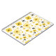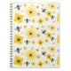A spiral notebook featuring a pattern with illustrations of honey bees, flowers, and polka dots.