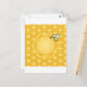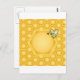 Honeycomb background with a cute honeybee postcard