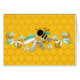 Golden honeycomb background with a horizontal curving lines of white daisies and one honeybee