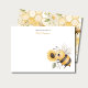 This honeycomb nursery note card features a cute bee holding a sunflower, surrounded by flowers and bees on a warm honeycomb background. The soft and playful design makes it a perfect personalized stationery piece.