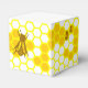 A small white box with a pattern around the sides of golden honeycomb with honey and bees. Click Customise It to add your name or message, change sizing, even save your design for later.