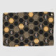 This contemporary design features a geometric gold colour beehive pattern, bumblebees, and a black colour background.
