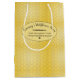 Wrap your honey products in a golden honeycomb shopping bag. Script lettering in an oval frame with DIY text for the beekeeper name, or any type of business, along with contact information. Combine with patterned tissue paper to protect your glass honey jars in transit. Let us create a set of customised labels and packaging for your business by contacting us with the link below. ©dotpattern