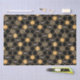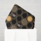 This contemporary design features a geometric gold colour beehive pattern, bumblebees, and a black colour background.