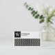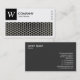 A business card template with a long rectangular image/photo area with a close-up photo of typewriter type leavers which alternatively can be replaced with your own image or photo and with a panel in the top left for a monogram or logo which includes a "W" as an example monogram which can also be changed. The design is balanced with four small rectangular text based symbols on the right created with the Semaphore symbol font. The white area is also a frame mask making it easy to position and resize a photo underneath. Company name and business type/quote on the front with name and contact details on the back in white on a contrasting dark grey background. Can be adapted to a variety of businesses and other uses.