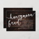 Celebrate the beginning of your journey together with our elegantly rustic modern rustic cottage dark wood background theme, crafted "Honeymoon Fund" wedding invitation enclosed card, wish, cash. Featuring a sophisticated blend of modern script and romantic allure, each card is meticulously designed to convey the essence of your special day. Perfectly suited for couples seeking a unique way to share their honeymoon dreams, this card invites your loved ones to contribute towards unforgettable experiences. Whether nestled in a luxurious envelope or presented alongside your wedding invitations, our card adds a touch of enchantment to your celebration, promising cherished memories that last a lifetime. Designed by TeeshaDerrick.