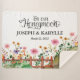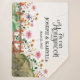 Beautiful honeymoon personalised blanket had watercolor blush wildflower hill garden with bride's and groom's custom names on it.