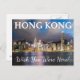 Postcard of the Hong Kong skyline with words "Wish You Were Here"