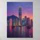 Hong Kong Skyline Pointillism Sunset Cityscape Poster