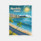 Transport yourself to the serene shores of Honolulu, Hawaii with this stunning travel poster-style design. Capturing the essence of paradise, this poster features a picturesque coastal view of the beach, gentle waves caressing the shore, and the iconic Diamond Head Volcano standing majestically in the background. Let the sunny skies and tranquil beauty of this island town adorn your space and bring a touch of tropical bliss into your home. This vintage design will bring back memories of classic travel posters from a bygone era.