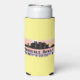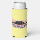 Seltzer can cooler features Honolulu Hawaii city skyline silhouette with watercolor splash and latitude & longitude map coordinates on yellow background.