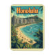 Explore the beauty of Hawaii with this vibrant and detailed vector illustration of Honolulu. This travel poster features a stunning beach scene with people enjoying the sand and surf, surrounded by palm trees, towering skyscrapers, and a bustling cityscape. Perfect for lovers of urban landscapes and tropical getaways, this poster captures the essence of Honolulu's unique charm and island life.