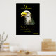 A majestic bald eagle glides across a bold backdrop, its sharp beak and intense gaze symbolising courage and dignity. The eagle's graceful flight captures a sense of resilience and strength. At the top, "Honour" is elegantly inscribed in bold yellow cursive, symbolising reverence and respect. Below, Aristotle's profound quote — "Dignity does not consist in possessing honours, but in deserving them" — is thoughtfully displayed in serif font above his name. This visually striking composition celebrates strength, wisdom, and the timeless beauty of nature’s regal guardian.