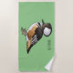 Hooded merganser bird cartoon illustration Beach Towel