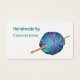 Put your own name and details on this card to say Handmade By. The front has a ball of turquoise and pink yarn, with an elegant wooden crochet hook through it on a modern white background. Ideal for anyone who loves or works with crochet, yarn crafts, crafting or creating and gives away or sells their work. Both sides are customisable with your name and website deta