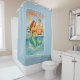 “Hooked Up” blends classic pin-up charm with coastal fishing humor. Featuring a rugged fisherman and flirty mermaid in a playful offshore fantasy scene, where she grabs the hook and flicks her jewel green tail. Sun soaked vintage colors, old-school poster style, and just the right amount of sass make this sky blue shower curtain a fun way to bring to ocean energy into your bathroom decor.