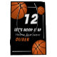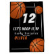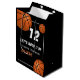 Hoop it up Basketball Sports Kids Happy Birthday Gift Bag. The design has a fun text "Let's hoop it up" and basketball balls on a black background. Add your name and age. Great for a basketball theme birthday.
