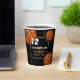 Hoop it up Basketball Sports Kids Birthday Party Cups. The design has a fun text "Let's hoop it up" and basketball balls on a black background. Add your name and age. Fun cups stickers for a basketball theme birthday.