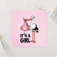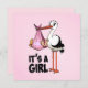 Hooray it's a girl - stork with baby invitation