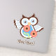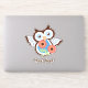 Hoot Hoot! Adorable spring owl floral Sticker. This cute design features a blue and brown owl with coral flowers. Polka dots cover her wings. The text: "Hoot! Hoot!" is under the image of the owl. Some elements by Trina Clark.