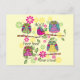 Hootie Owls T-shirts, mugs, bags, cards, stickers, magnets, key chains, keepsakes, wall clocks, water bottles, and more, colourful and fun, features five owls on branches surrounded by flowers of magenta, yellow, and green!