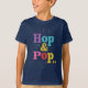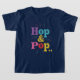 A t-shirt design with the text "Hop & Pop..." in multi-colour, featuring a vintage-inspired, hand-lettered font.