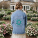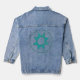 This women's denim jacket has a Native American inspired design of triangles overlapping to form a circle with a larger circle around it in honour of Native American Heritage month.