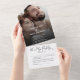 If you are envisioning a wedding that radiates charm and sophistication, our all-in-one wedding invitation is designed just for you. Featuring a contemporary design with a touch of elegance, this invitation is sure to make a lasting impression on your guests. Showcase your beautiful love story with a cherished photo of you and your partner. It adds a personal touch and allows your guests to feel connected to your journey. The dark transparent gradient overlay adds a touch of mystique to your invitation, making it visually captivating and giving it a modern edge. It sets the perfect tone for a memorable wedding celebration, while the delicate and romantic script, enhances the overall charm of the invitation. We know how important it is to streamline your wedding planning process. With our tear-off RSVP postcard, your guests can easily respond, making it effortless for you to keep track of your guest list. Don't miss out on these delightful features that will make your wedding invitations unforgettable! Order our all-in-one wedding invitation today and create an extraordinary celebration of your love story!