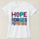 The "Hope Forges Futures" t-shirt design features a powerful and uplifting image that symbolises the transformative power of hope. At the centre, a stylised anvil and hammer are depicted, with sparks flying as if hope itself is being forged into reality. Above the anvil, the word "Hope" is prominently displayed in a bold, elegant font, while below, "Forges Futures" is written in a script that conveys movement and growth. The design is dynamic and inspirational, encouraging the wearer and those who see it to believe in the positive impact of hope on shaping a better future. The colour palette is vibrant yet balanced, with deep blues and bright golds that signify both strength and optimism.