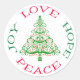Here's a pretty sticker for versatile use during the Holiday Season. It features a decorative red and green image of a Christmas tree in the middle. The tree is encircled by the text Love Hope Peace Joy in red and green.