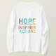 This vibrant and eye-catching t-shirt design features the powerful message "Hope Inspires Actions" in bold, multi-coloured lettering. The abstract background adds a dynamic and artistic element, making it a visually striking piece. The design is perfect for anyone who believes in the transformative power of hope and the importance of taking action.