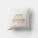 Find peace and inspiration with this uplifting throw pillow. The inspiring message "Hope Is The Anchor Of The Soul" is presented in a vibrant blend of pastel colours, reminding us that even through challenges, hope offers a secure haven for our soul. The pristine white background symbolises purity, while the delicate palm tree silhouette adds a touch of serenity and escape.