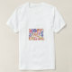The t-shirt design features the phrase "Hope Sparks Revolutions" in a bold, graffiti-style font. The letters are splattered with vibrant, contrasting colours, creating a dynamic and energetic effect. The overall design conveys a message of optimism and social change.